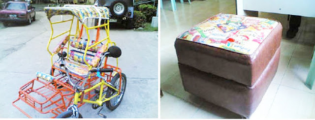 The municipality of E.B. Magalona even uses doy packs creatively (and colorfully) for pedicabs and office chairs.